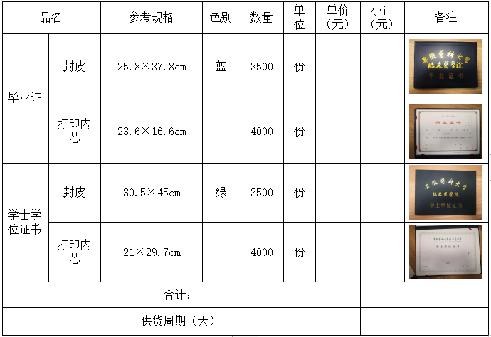 2.项目名称: 毕业证书、学位证书封面及内芯项目采购