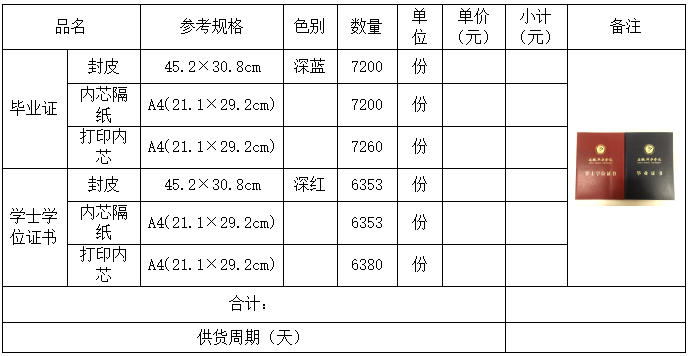 毕业证书、学位证书封面及内芯项目招标公告