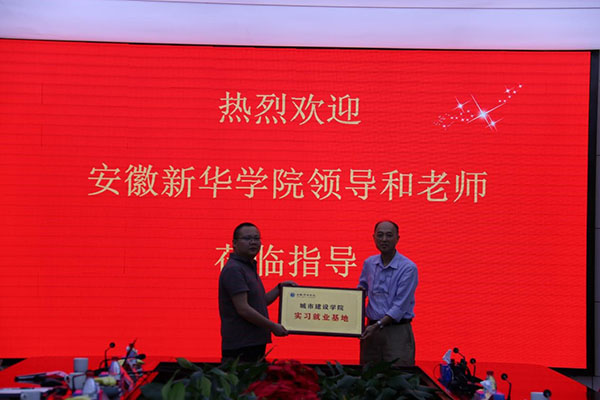 随后,李金星代表威尼斯wns8885556聘请吴德雨为威尼斯wns8885556城市建设学院产学研副院长,并颁发了聘书。城市建设学院院长沈小璞与苏亚集团王金国共同为实习就业基地揭牌。