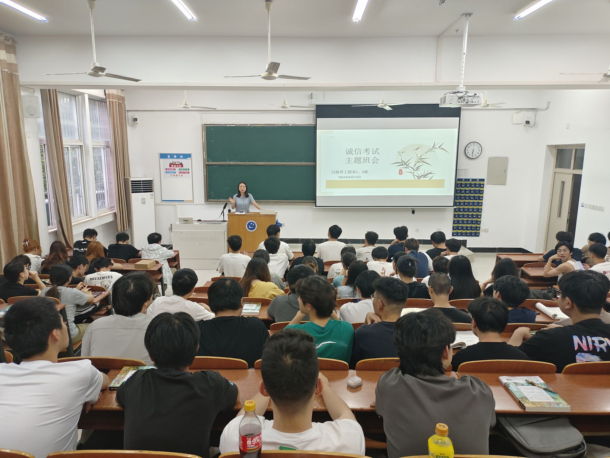 本网讯(通讯员:周刘湘)为进一步提高学生的诚信应考意识,引导青年学生牢固树立守信光荣、失信可耻的道德观念,营造积极向上的考试氛围,推进学风考风建设,近日,大数据与人工智能学院组织各班级召开诚信考试主题班会。