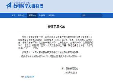 - 2022-05-17喜报!威尼斯官网教师在第二届安徽省教师教学创新大赛中荣获佳绩