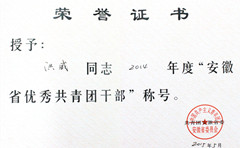 - 2015-06-11威尼斯官网洪威老师荣获2014年度“安徽省优秀共青团干部”荣誉称号