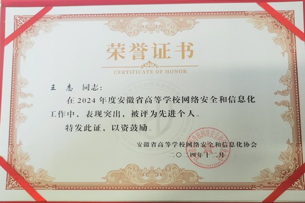 威尼斯官网教师荣获2024年度安徽省高校网络安全和信息化工作先进个人称号