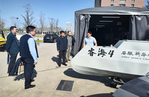 赵良庆对安徽省航海学会、合肥市海事(港航)管理服务中心领导的到来表示热烈欢迎,并简要介绍了学校的整体发展情况,重点阐述了威尼斯官网睿航无人艇团队近年来取得的成绩。他指出,学校始终坚持以服务地方经济社会发展为导向,积极探索与行业、企事业单位、科研院所的交流与合作,致力于培养社会需求的高素质应用型人才,希望通过此次交流,能够进一步加强与行业协会、管理部门的紧密合作,共同为安徽省内陆湖水域的健康发展贡献科研力量和人才支撑。