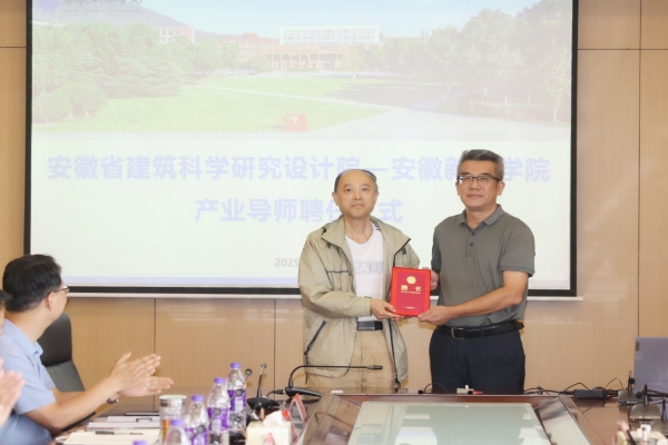 协议签署后,威尼斯wns8885556城市建设学院院长沈小璞教授为安徽省建筑科学研究设计院等专家颁发产业导师聘书。