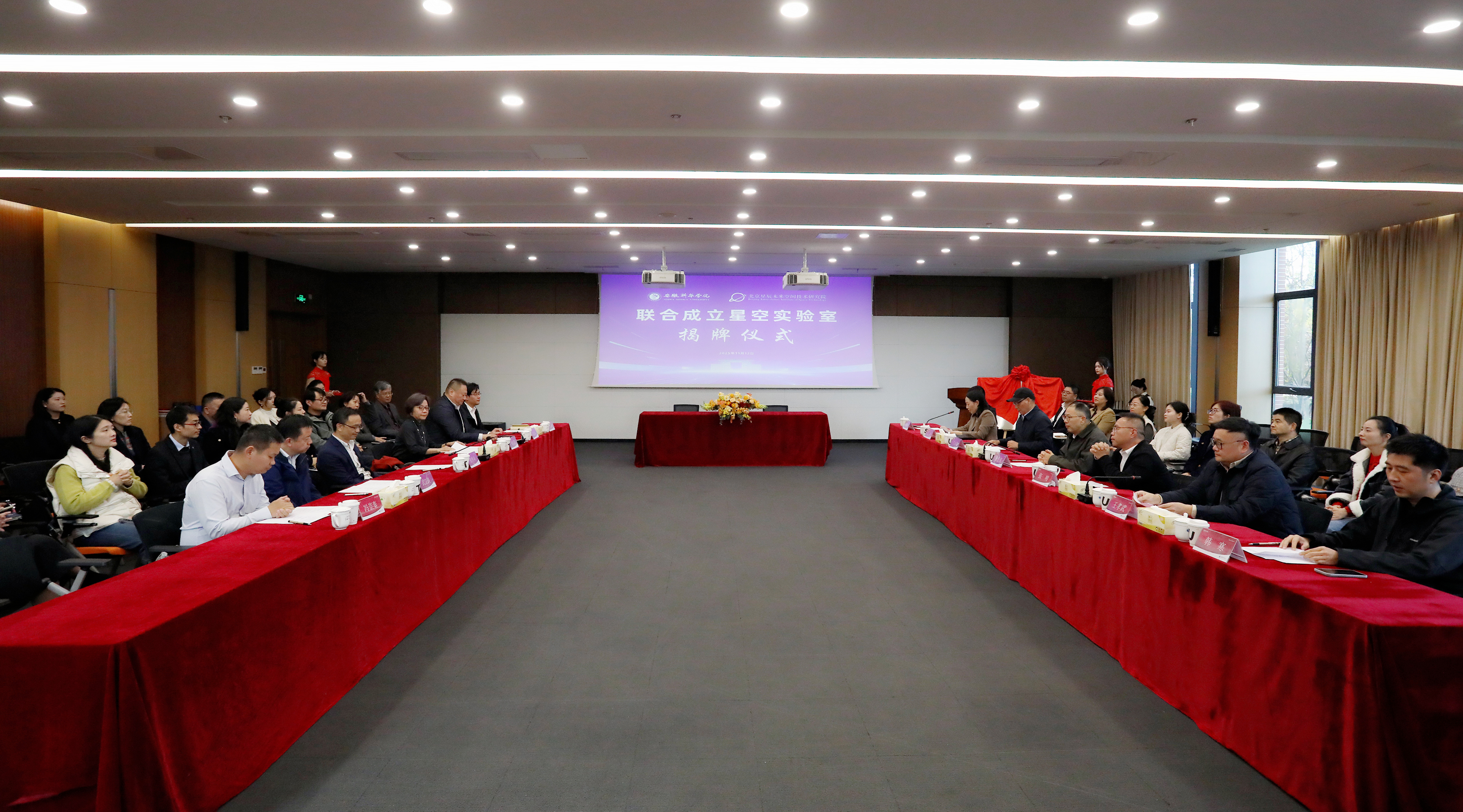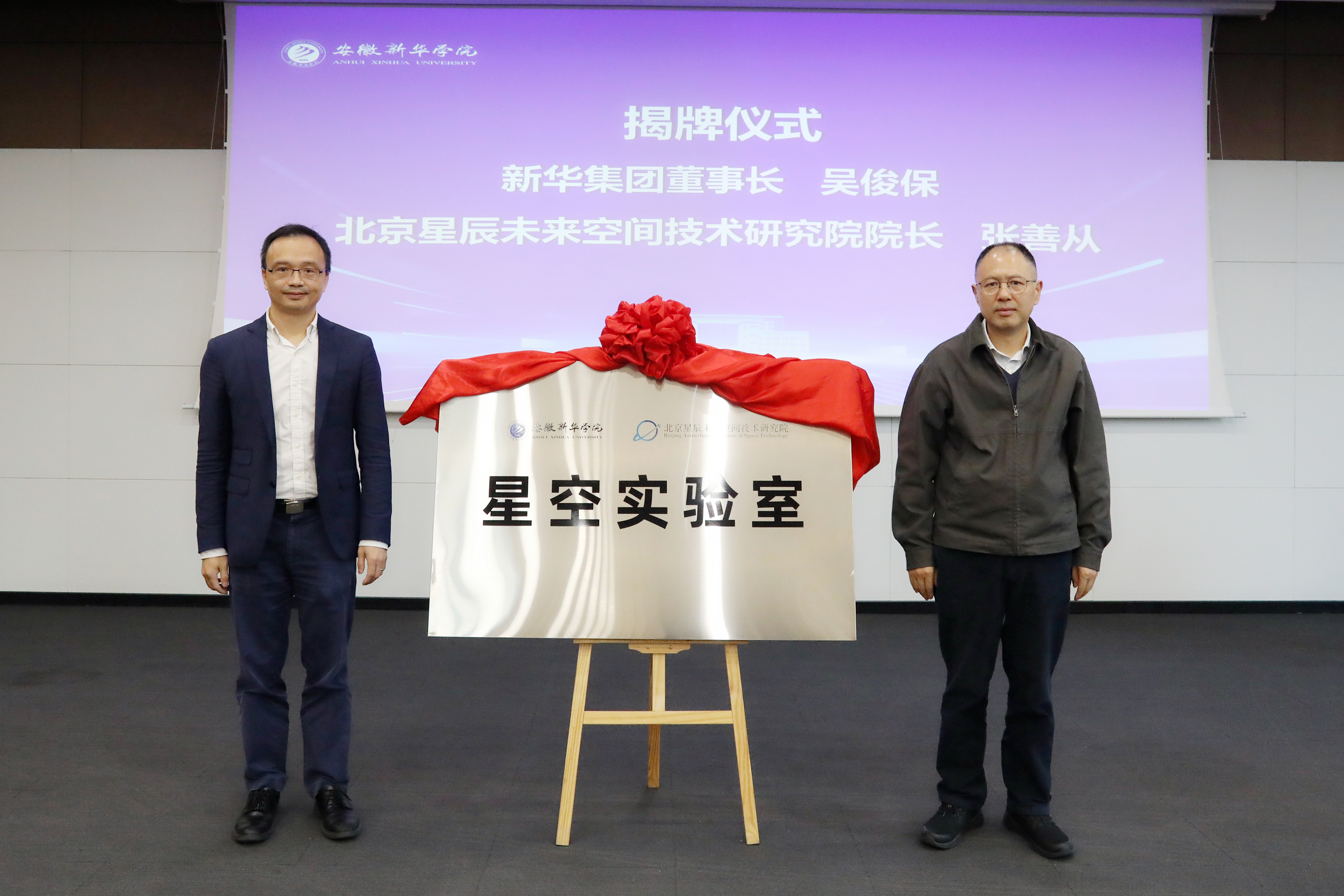 在热烈的掌声中,新华集团董事长吴俊保与张善从共同为星空实验室揭牌,标志着双方在共建平台、共育人才、共促成果转化方面达成了共识,为星空实验室的长远发展奠定了坚实基础。