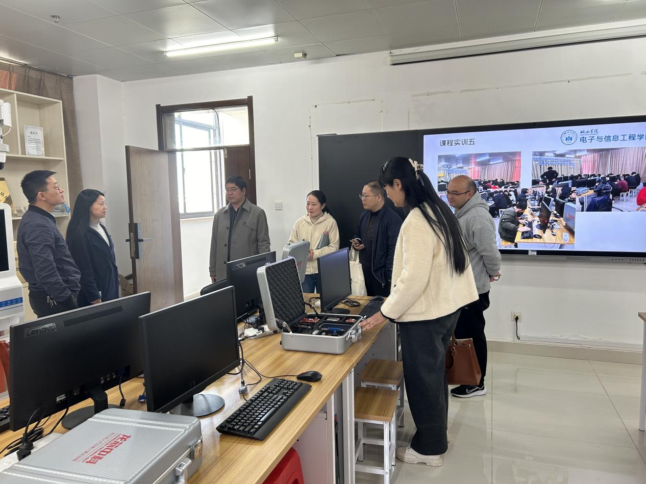 考察团随后深入学院的实验室,实地参观了先进的实验设备,了解了实验室在服务教学、科研以及产学研合作方面的运行机制,尤其是“博微长安新创研究院”的生态信创人才培养模式给考察团留下了深刻印象。皖西学院在实验室建设上高投入、重管理,构建开放共享平台,促进学科交叉融合的模式,为考察组在实验室建设规划与管理创新方面提供了宝贵借鉴。