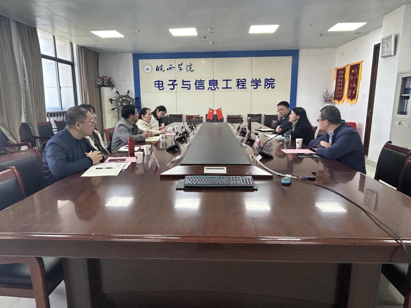 抵达皖西学院后,皖西学院电子与信息工程学院领导班子对考察团表示热烈欢迎,座谈会上,双方围绕硕士点申报的难点、专业建设的痛点、实验室建设的要点等共同关心的问题展开了热烈讨论。皖西学院电子与信息工程学院相关负责人毫无保留地分享了成功经验,考察团成员认真聆听、详细记录,并结合本校实际情况提出疑问,现场互动频繁。