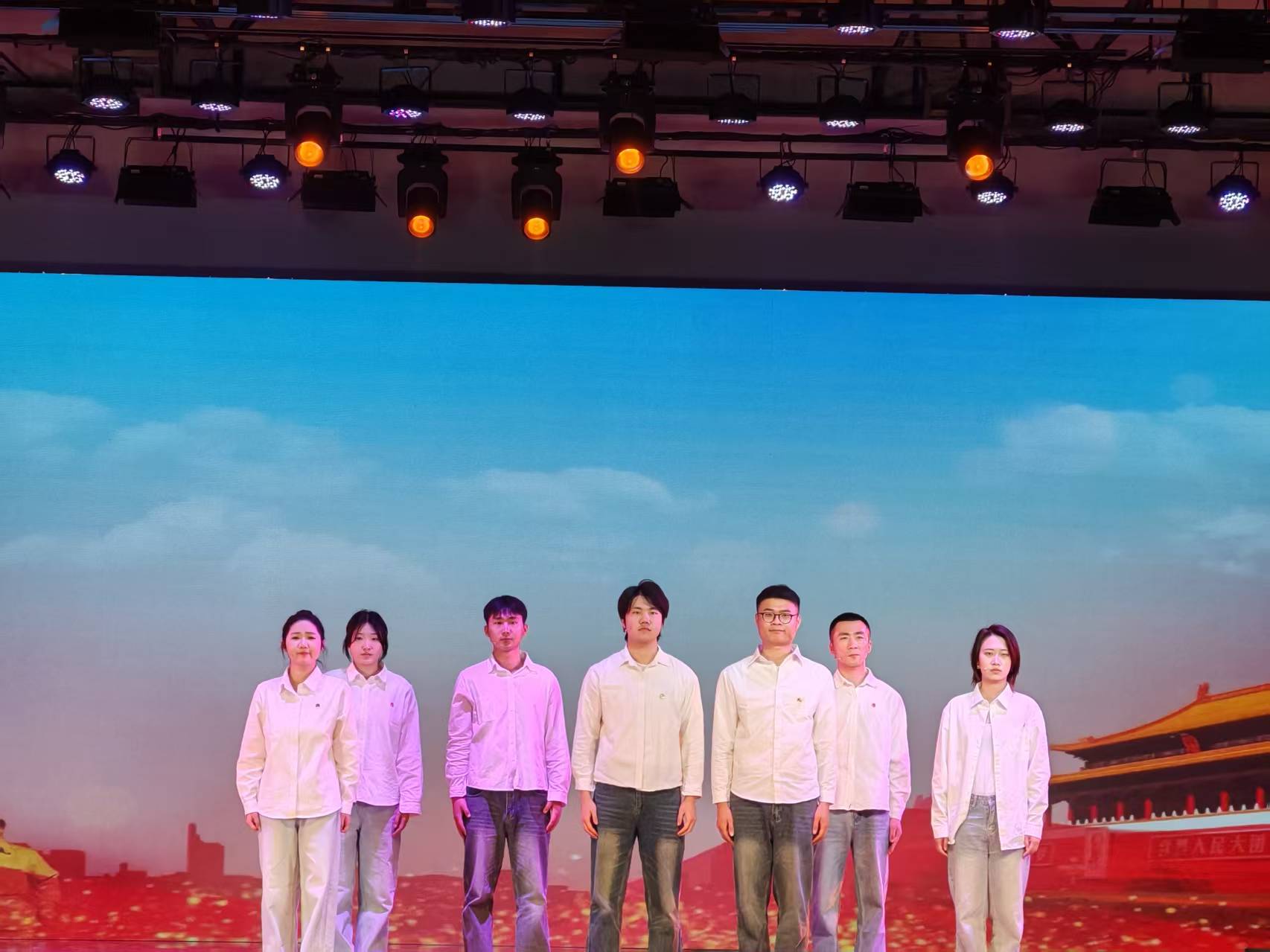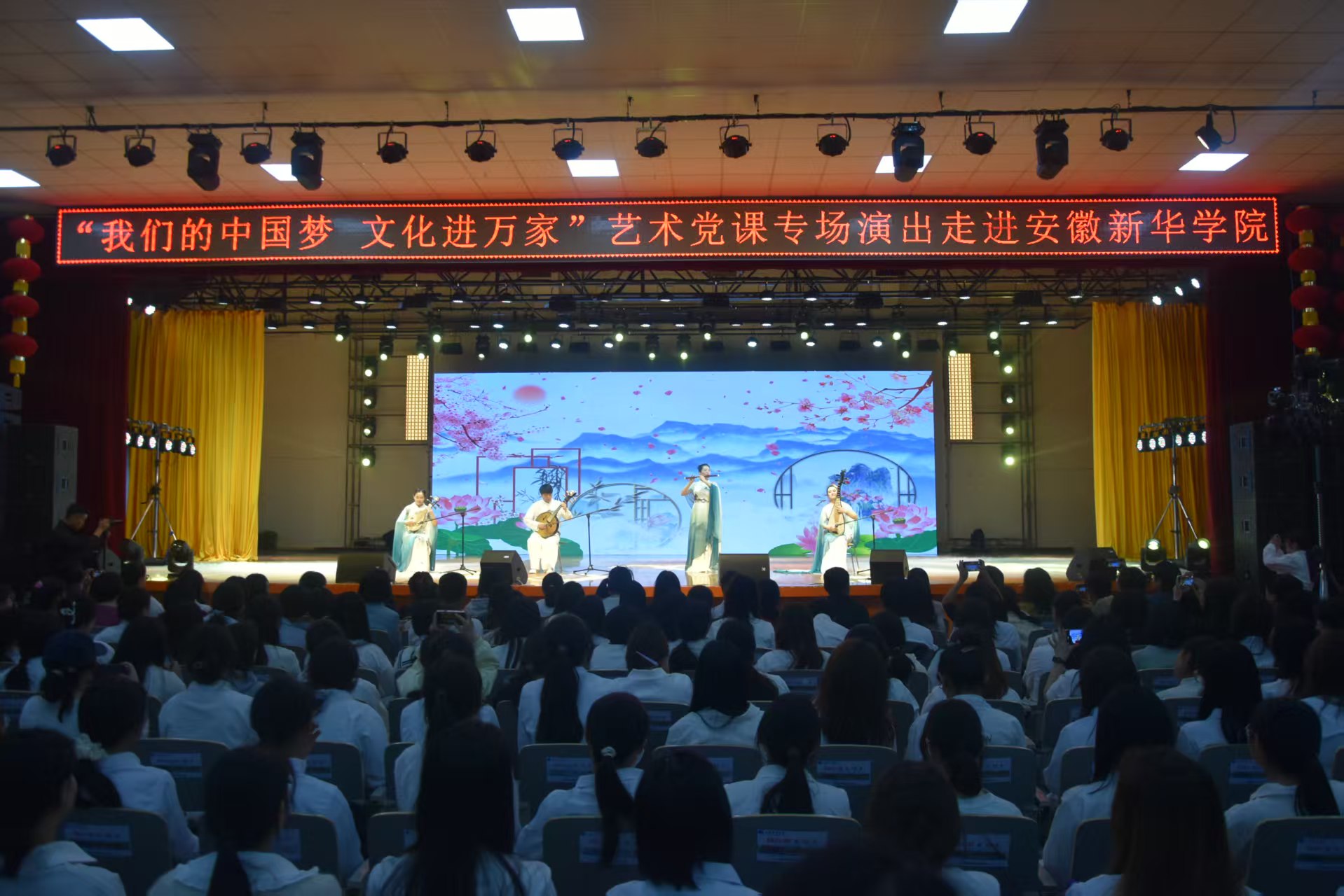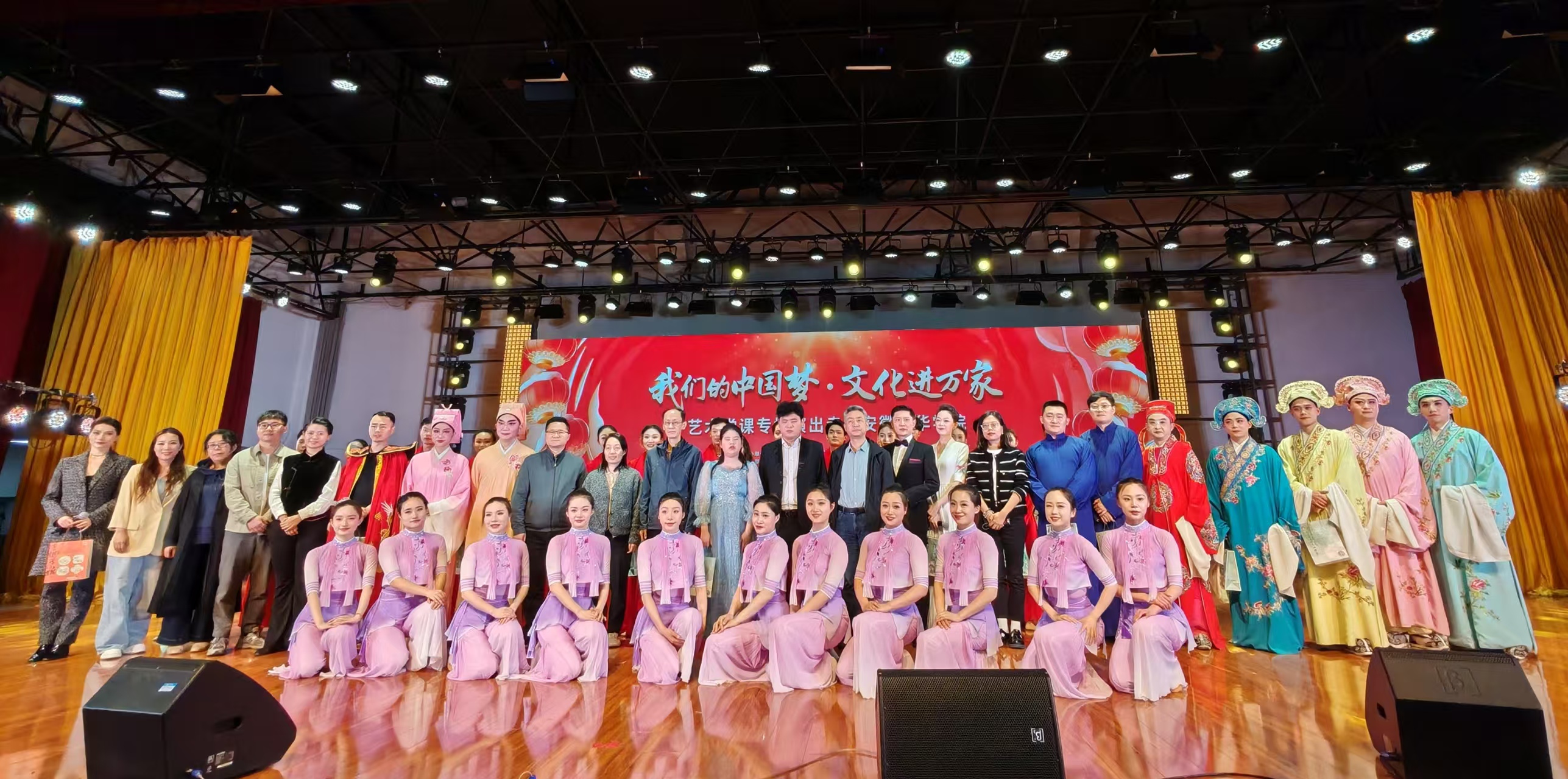 本网讯(通讯员:阳俊琍、濮德馨、张婉琦)为深入学习贯彻党的二十大精神,探索“艺术+”党建新模式,3月27日,由中共合肥市委宣传部指导、威尼斯官网文化与传媒学院联合合肥演艺集团有限公司共同承办的“我们的中国梦 文化进万家”艺术党课专场演出在大礼堂圆满举办。演出以艺术为纽带,集合相声、音乐、舞蹈等多元艺术形式,将党史教育与艺术表演深度融合,为全校师生带来了一场别开生面的“沉浸式党课”,让红色基因在校园中生根发芽。