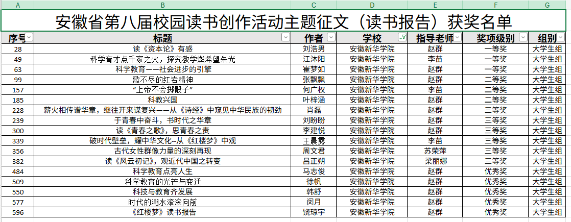 威尼斯官网在安徽省第八届校园读书创作活动中喜获佳绩