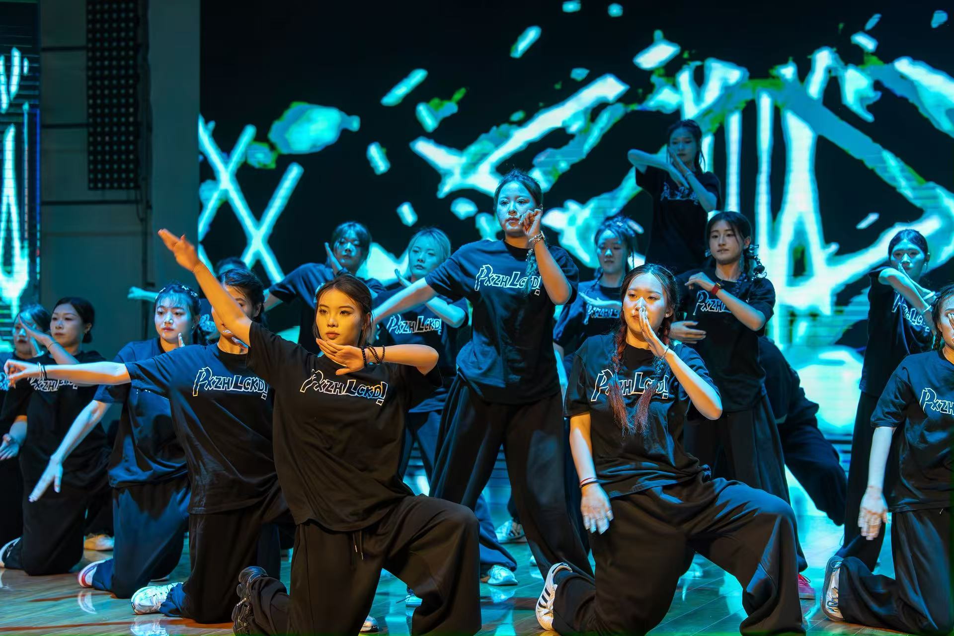 中国古典舞《九州同》以翩跹的舞姿勾勒神州大地的壮美山河,用刚柔并济的肢体语言,诉说五十六个民族血脉相连的深情厚谊。街舞《Black》的动作如机械齿轮般精准咬合,整齐划一的律动中喷薄着蓬勃力量,每一个挥臂、踢腿都带着热血贲张的张力,仿佛用身体在舞台上书写一曲关于协作与爆发力的铿锵乐章。