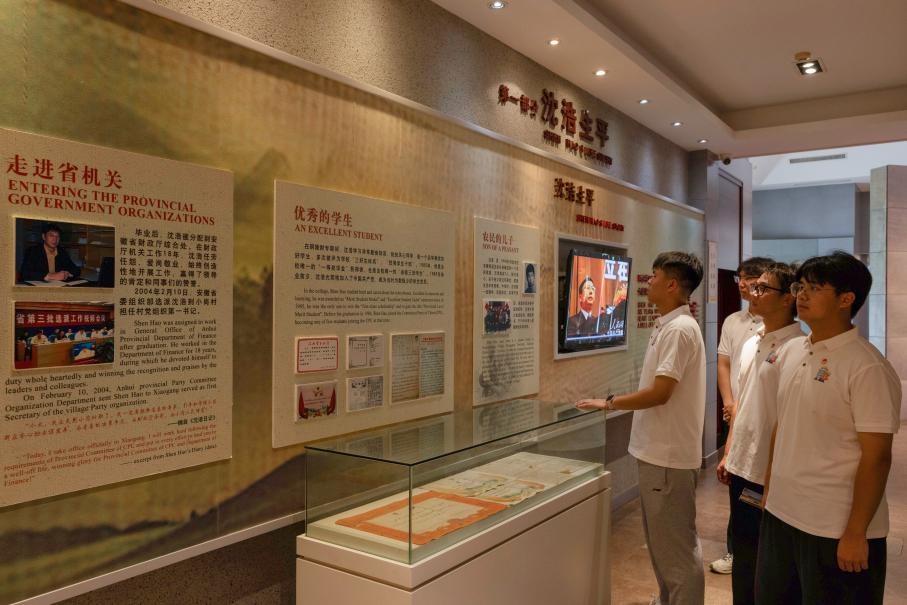 “小岗村的土地,深深镌刻着‘改革’二字。”在凤阳县沈浩先进事迹陈列馆,队长申栋在参观后深有感触。展馆内朴素的陈设传递着震撼人心的力量,沈浩同志生前使用的办公桌、工作笔记和地图,无声诉说着他心系群众、鞠躬尽瘁的赤子情怀。实践团成员认真聆听讲解,驻足凝视展品,深切感悟这位优秀共产党员将满腔热忱与宝贵青春奉献给乡村发展的崇高人生。