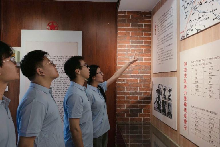 在怀远县新四军淮上行署旧址纪念馆,实践团队接受了一次深刻的革命传统教育。馆内陈列的泛黄电文、斑驳军装、旧式电台,配合讲解员饱含深情的讲述,将队员们带回那段烽火连天的峥嵘岁月。彭雪枫将军率领部队扎根淮北、与人民同甘共苦的感人故事,引发了队员们的强烈共鸣。
