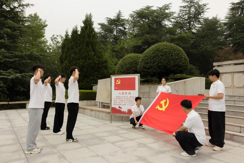 清晨,实践团成员怀着崇敬之情步入蚌埠市革命烈士陵园。松柏苍翠,庄严肃穆。全体成员在纪念碑前肃立默哀,深切缅怀为革命事业英勇献身的无名英烈,表达对先辈的无限追思。随后,学生党员代表在鲜红党旗下庄严宣誓,重温入党誓词, 誓言铿锵,彰显新时代青年的初心使命。