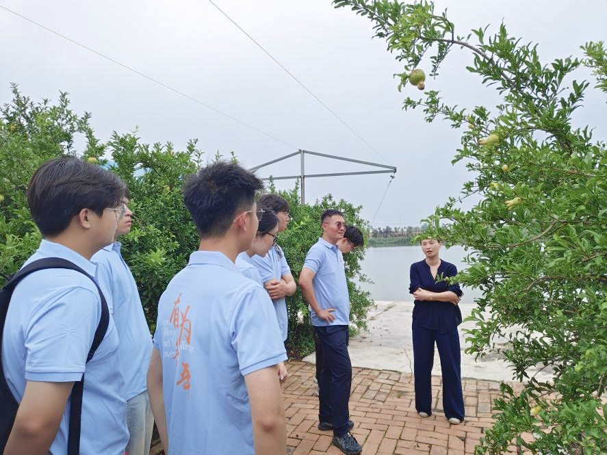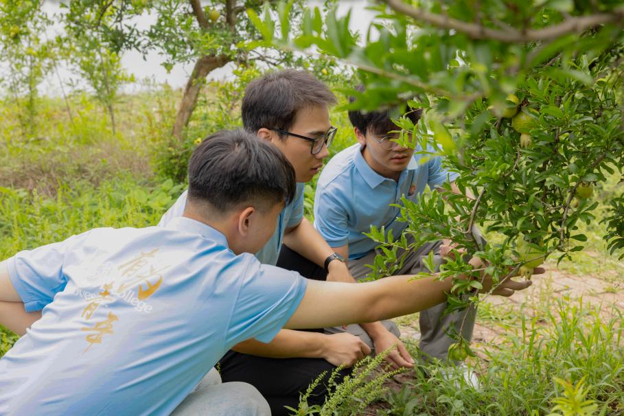 基地技术人员详细介绍了石榴的标准化种植、智慧灌溉系统、全链条品质管控及市场拓展策略。队员们认真记录学习,深入了解产业融合发展的关键环节,实地感受农业现代化对促进农民增收、推动乡村振兴的巨大作用,也进一步激发了运用所学专业知识服务地方经济发展的责任感和使命感。