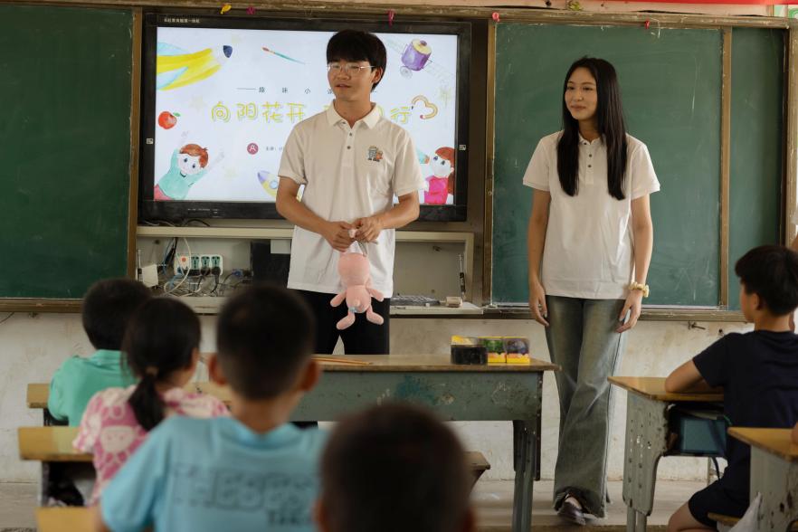 实践团还为学校捐赠了图书和文具,期望为孩子们点燃求知的火种,播下希望的种子。队员谢子峰在感悟中写道:“孩子们眼中闪烁的光芒,正是指引我们青春航向的星辰。”乡村孩子们在困境中依然乐观向上、充满阳光的笑容,深深感染和鼓舞着每一位队员。这场跨越年龄的双向奔赴,不仅为乡村儿童带去了关爱与陪伴,更让实践队员深刻体悟到教育的温度与沉甸甸的责任,坚定了他们未来扎根基层、服务社会的理想信念。