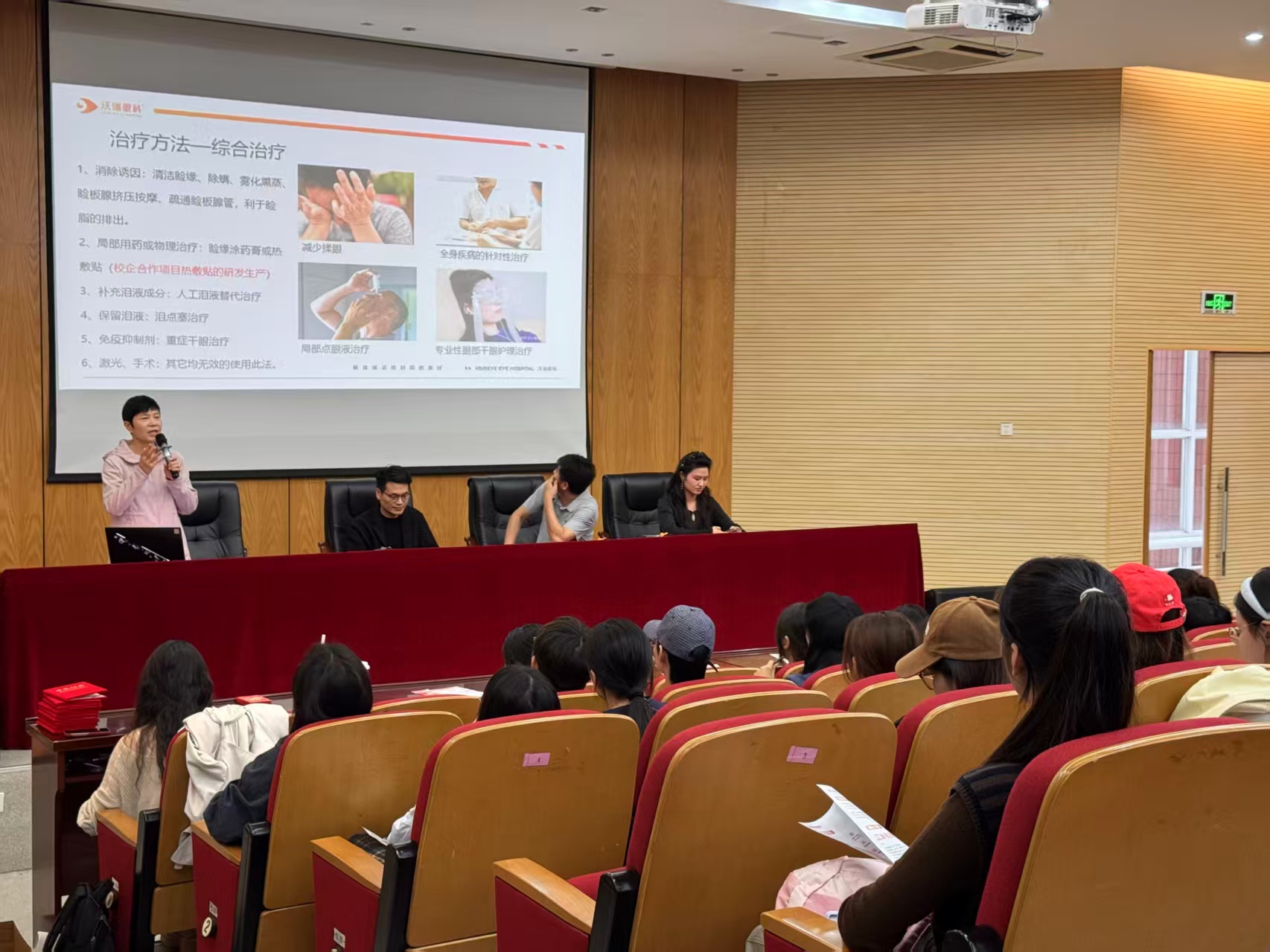 借此机会,付玲玲院长也向在座师生分享了实用的眼健康知识。她强调:“当前,青少年近视率高发,大学生群体中干眼症、视疲劳等问题也日益普遍。这提醒我们,爱护眼睛绝非一朝一夕之事。希望大家能养成良好的用眼习惯,包括减少连续近距离用眼时间、增加户外活动、保持正确的读写姿势等。我们举办这次设计大赛的初衷,正是希望借助艺术的力量,让更多年轻人以生动、有趣的方式关注并理解眼健康的重要性,将爱眼护眼的理念深入人心。”