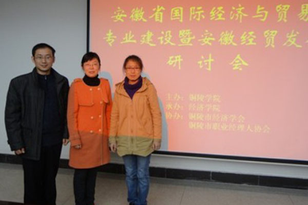 11月17日,李光辉老师一行三人又参加了在铜陵学院举办的“安徽省国际经济与贸易专业建设暨国际经贸发展研讨会”。铜陵学院校长丁家云、副校长冯德连、铜陵学院经济学院院长吴杨教授以及来自安徽大学、安徽财经大学等省内18所高校的50余名专家学者参加了会议,并在研讨环节相继发言。与会专家学者紧紧围绕研讨会主题,从国际经济与贸易专业的人才培养方案、课程与教材建设、教学方法、教学改革、实践教学和学生就业等方面进行了广泛的交流,部分高校还介绍了各自专业建设的特点和优势,并对构建安徽省国际经济合作新优势等诸多方面的问题发表了富有建设性的见解。