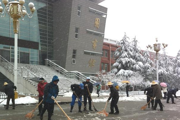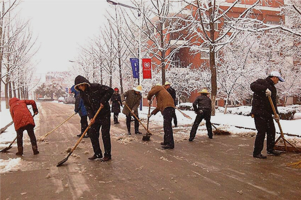 尽管寒风袭人,积雪湿透了鞋袜,但是大家仍冒着风雪,铲雪除冰。经过一个上午的集中除雪,中快广场、图书馆及行政楼周边路段、翰林广场、一期、二期、四期开水房等路段的积雪被清理完毕,为师生出行提供了方便。