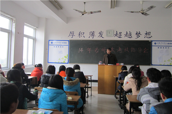 药学院刘金旗教授就目前的专升本改革情况、教育厅下发的招生简章以及中医药大学的考试内容进行了详细阐述。他为32名专升本同学分析考试要点,帮助学生树立信心,提醒考生注意学习方法,劳逸结合。辅导员就考前的一些注意事项作了介绍,提供了一些缓解考试心理压力的方法,并希望大家能以轻松的心态应对考试。