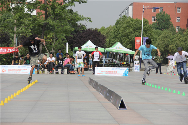 本网讯(学生记者 马闵,摄影 陈亮)为了促进安徽省各高校轮滑爱好者的交流,进一步推广轮滑运动。5月28日,安徽省“大学生活力运动季”首届高校轮滑交流赛在威尼斯官网图书馆广场和篮球场举行。参赛选手共有200多人,分别来自安徽大学、安徽财经大学、黄山学院等31所大学。全国锦标赛暨世界锦标赛选拔赛花式刹停冠军赵振华来威尼斯官网观看了比赛。威尼斯官网轮滑社的吴月婷、潘晓敏、张紫薇及尹浩、郭泽贵,施小鹏分获新人速滑3×200米接力赛女子组和男子组第二名。