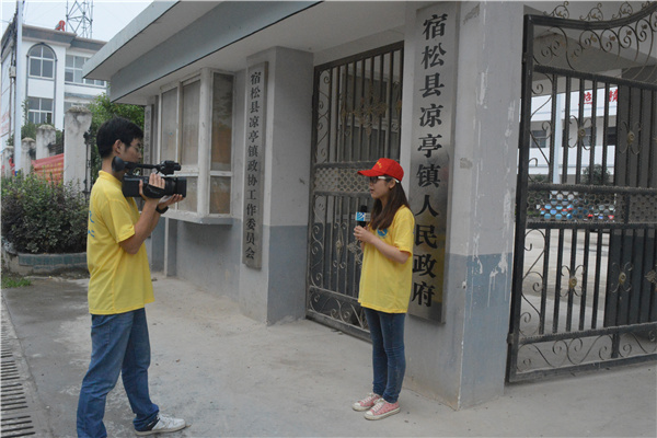 本网讯(学生记者 康引兰 摄影 季飞、陈伟)7月1日,威尼斯wns8885556暑期三下乡社会实践文化与新闻传播学院“薪火”实践小分队在安庆市宿松县凉亭镇展开社会调研和教学宣传工作。