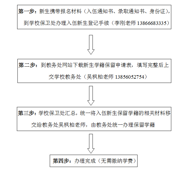 备注:入伍新生只需办理到第二步,剩下步骤由学校相关部门统一办理。