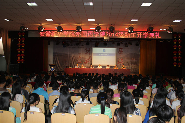 本网讯(通讯员 彭洪磊)9月4日中午,外国语学院在校大礼堂召开2014级新生入学典礼,部分专业在外国语学院教学楼举办专业教育活动。外国语学院院长任静生、相关负责同志以及全体教职工及全体2014级新生参加了本次活动。