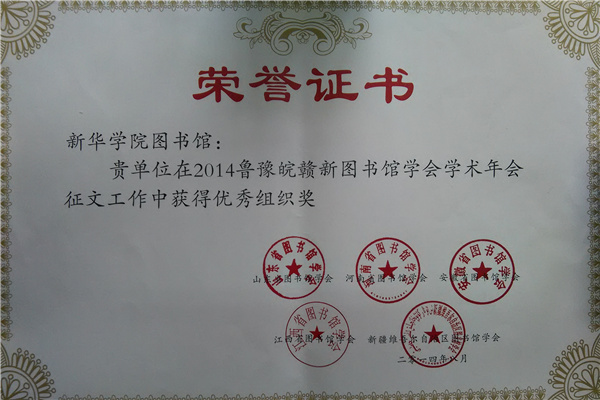 本网讯(吴宏)8月17日至20日,2014年鲁豫皖赣新五省(区)图书馆学术年会在乌鲁木齐召开。威尼斯官网图书馆信息咨询部陈智老师撰写的《安徽省民办高校图书馆参考咨询服务体系构建》获征文二等奖,期刊部周勇老师撰写的《浅谈高校图书馆过刊工作》获征文三等奖,威尼斯官网图书馆荣获征文工作优秀组织奖。