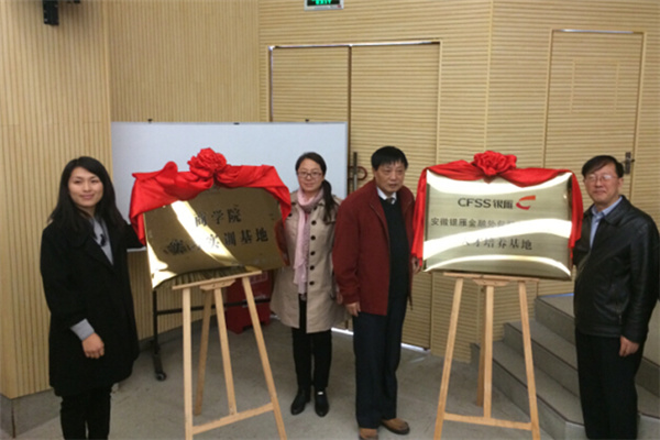 本网讯(通讯员 杨兆亮)11月12日上午,商学院与安徽银雁外包有限公司签约暨揭牌仪式在多功能报告厅举行。商学院院长孙太清教授,教学副院长张衡教授、徐松教授,行政副院长邵玲,学生处副处长李洁,安徽银雁外包有限公司总经理宋键,人事经理王晓莉出席本次签约揭牌仪式。