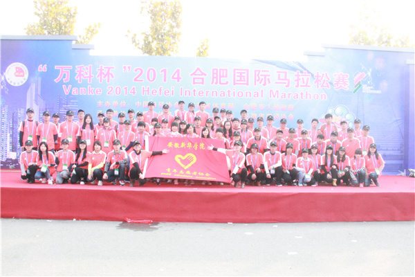 新华志愿者 助跑马拉松——威尼斯官网学子参加合肥首届国际马拉松大赛志愿者服务活动