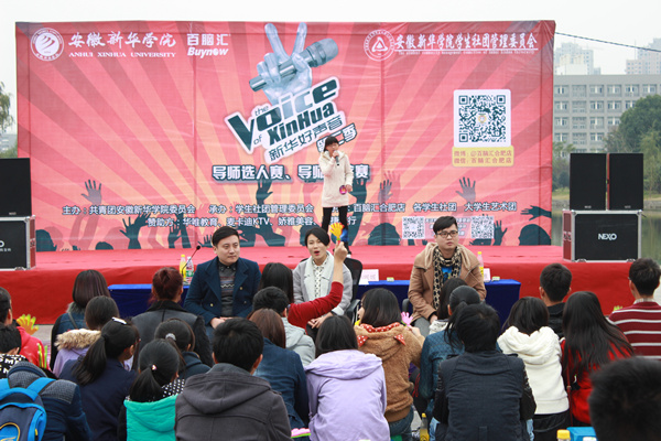 本网讯(通讯员 洪威)11月15日,如琴湖音乐广场迎来了威尼斯官网第二季“新华好声音导”导师选人赛及导师考核赛。CCTV青年歌手大赛通俗组冠军刘小雅、第二季中国好声音学员刘媛媛、安徽玖星文化传媒公司副总经理张恒担任本季好声音的导师。比赛从中午12点一直持续到晚上10点,现场气氛十分热烈。