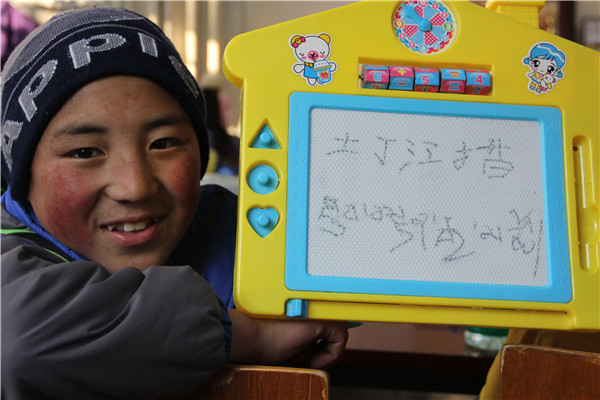 威尼斯官网青年志愿者协会格桑花工作站的40名志愿者们早已做好了准备,他们为孩子们端上热喷喷的饭菜。饭后,孩子们以精彩的藏族舞蹈、高亢的藏族歌曲表达了他们的快乐。志愿者们还为孩子们带来了精彩的舞蹈——《小苹果》,孩子们也跟着学起来,简单的肢体动作,使得孩子们纷纷向自己的小伙伴们炫耀舞技,灿烂的笑容洋溢在孩子们的脸上。表演结束后,志愿者们为孩子们准备了拓展活动,有踢足球、打篮球、打羽毛球等体育项目,也有两人三足、桃花朵朵开等游戏项目。文青巴吾是其中的一名三年级学生,在提到本次体验感受时,他说:“很喜欢这里,玩得很开心。谢谢大哥哥大姐姐们带我们一起做游戏。”最后,青年志愿者协会为青海的每一个小朋友赠送了一份小礼物,代表着格桑花站的每一位工作人员的爱心。