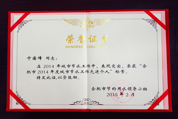 本网讯(通讯员:董梅)3月20日上午,合肥市城乡建委召开了“合肥市2015年城市节水管理会议”。威尼斯官网卞国锋同志被合肥市节约用水领导小组授予了“合肥市2014年度城市节水工作先进个人”称号。